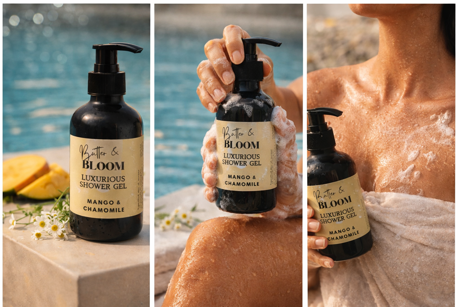 Indulge in the luxurious embrace of Butter & Bloom Shower Gel in Mango Chamomile. This exquisite blend of olive, avocado, castor, and coconut oils gently cleanses while nourishing your skin, ensuring it remains impeccably hydrated. The aromatic fusion of chamomile and mango elevates your bathing ritual, creating an enchanting sensory experience. Apply with a circular motion and rinse, avoiding contact with eyes, to reveal a silky radiance.