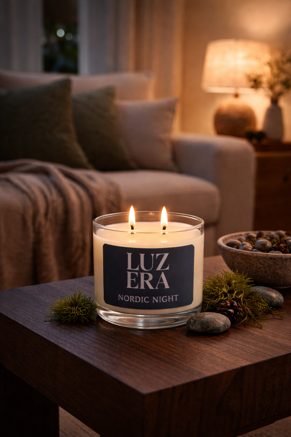 Nordic Night is a refined, atmospheric fragrance inspired by quiet northern evenings where cool air meets moss covered forests under a moonlit sky. This slightly sweet, musky ozonic scent brings a sense of calm and clarity to any space, wrapped in effortless elegance.